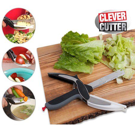 Cutting will now be easy and quick with this gadget. The ergonomic design of the device, along with long handles made of high-quality plastic, will save you from getting tired when cutting This sharp knife is made of Stainless Steel, which is a high-quality and durable material. The knife doesn’t become blunt with use and can handle any kind of cutting. A bright stylish design allows this cooking tool to enhance the look of your kitchen. Minimum effort is required when cutting. You won’t need a cutting board as it’s built right into our kitchen tool. Cut vegetables, greens, and other products right in the bowl, pan, or frying pan. Create the easiest food decoration in even the most sophisticated dishes with our universal knife. Cleaning after cutting will be easy as you simply have to wash the herb scissors in a dishwasher or by hand. Looking for an ideal gift for the holidays? Buy your friends or relatives a new, multifunctional kitchen item. The effective in the kitchen, high-quality, stylish, comfortable to use and economical super knife from kools will be indispensable in any kitchen. Using The Clever Cutter – Learn how to get the most out of your Clever Cutter with our series of tips.Cleaning Your Clever Cutter – Learn how to clean and store your Clever Cutter safely. Ergonomic grip is easy on hands Premium stainless steel blade No messy clean-up Opens wide but stores small Chops and slices in seconds Save counter space…
